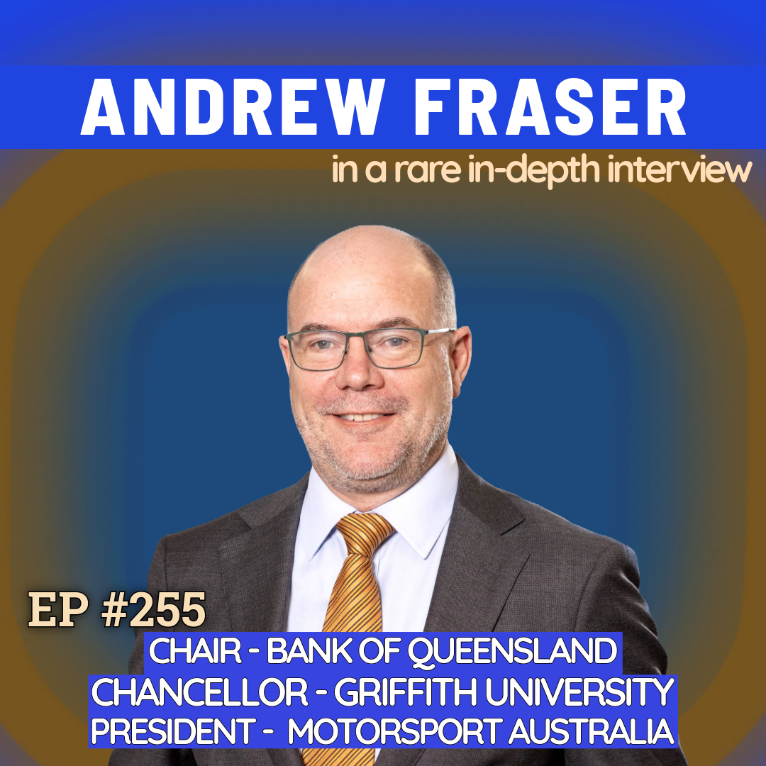 Episode #256 features Andrew Fraser, Chair of Bank of Queensland, Chancellor of Griffith University, President of Motorsport Australia, and former Deputy Premier and Treasurer of Queensland.